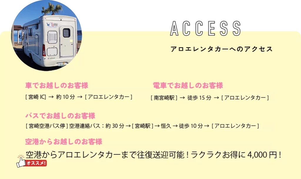 宮崎空港から10分のキャンピングカーレンタルサービス